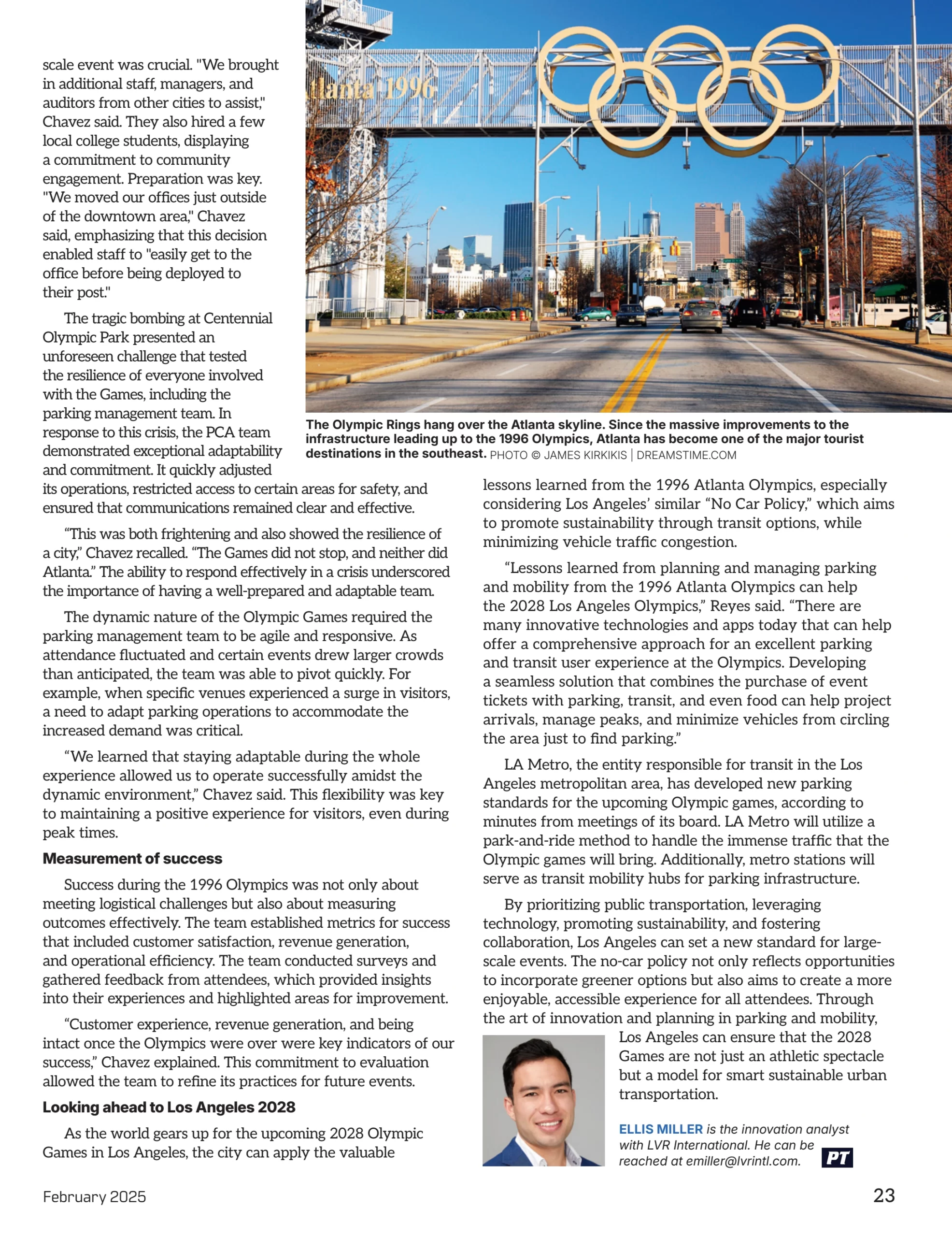 LVR International shares lessons learned on parking and mobility from 1998 Olympics to help guide the 2028 Olympics in Los Angeles on Parking Today February 2025 edition.